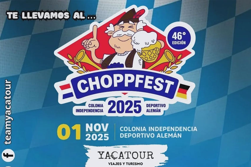 “La 46° edición de la Choppfest se celebra en Colonia Independencia e incluirá música, danza, sabores típicos y una celebración de la tradición alemana, con artistas como el Binomio de Oro. Las entradas están disponibles en plataformas como Ticketea”, indica una gacetilla informativa sobre este evento.